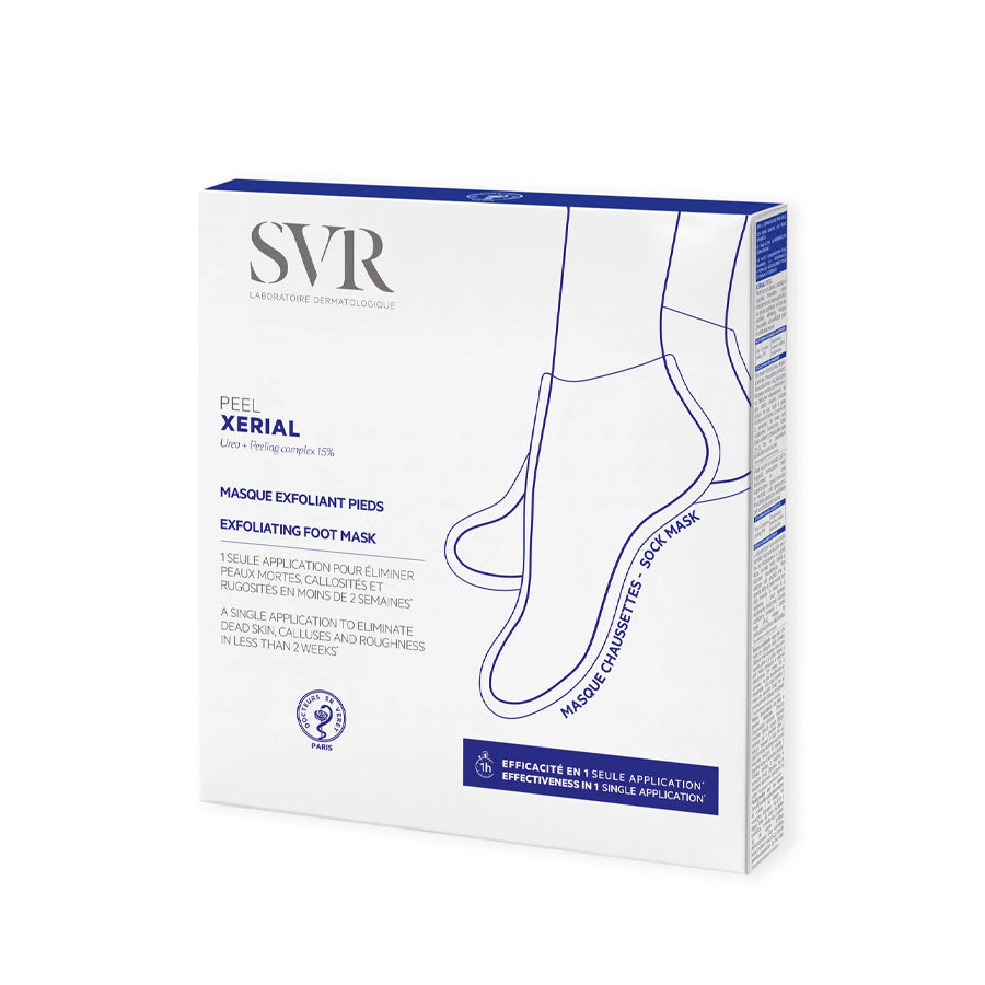 SVR Xerial Peel Máscara Pés é uma máscara meia ultra esfoliante que renova a pele dos pés em apenas uma aplicação. Com uma elevada concentração de ativos dermatológicos que esfoliam, hidratam a pele, eliminam a pele morta, calosidades e rugosidades ao final de 4 a 5 dias, com apenas uma aplicação de 1 hora.