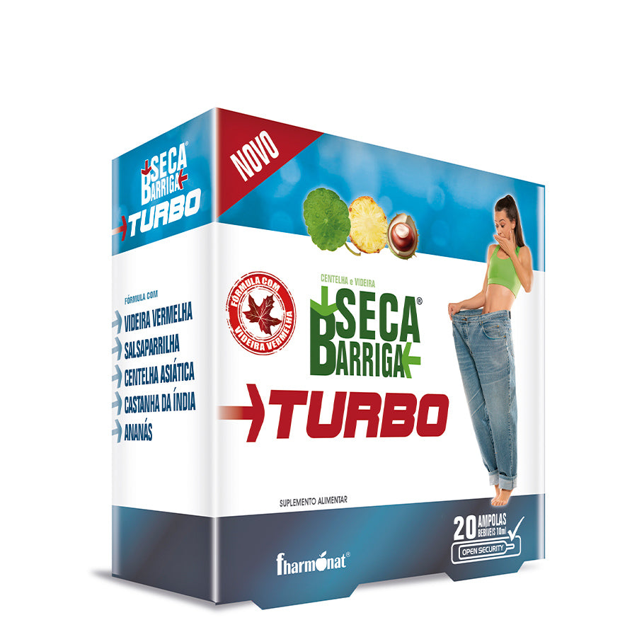 Seca Barriga Turbo é um suplemento alimentar indicado para reduzir a gordura localizada na cintura e na zona abdominal, contribuindo para uma barriga lisa e desinchada. Melhora o metabolismo e elimina a gordura, as toxinas e os líquidos do organismo, ajuda no caso de pernas inchadas e retenção de líquidos.