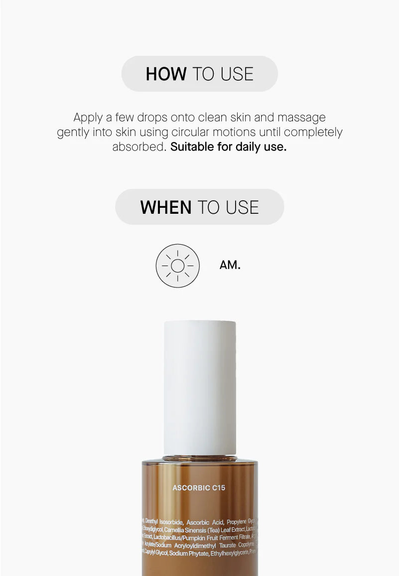 O Ascorbic C15 sérum tem um PAO de 3 meses. Depois de aberto, guarde em local fresco e seco, abaixo de 5º.