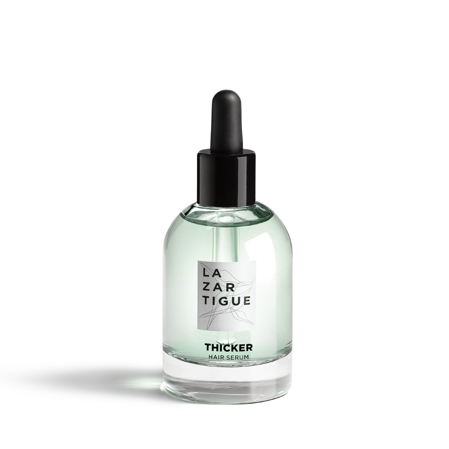 Lazartigue Thicker Serum stops progressive hair loss. Vegan formula with 97% ingredients of natural origin, provides a global anti-hair loss action, stimulates the hair follicle, strengthens fine hair and protects the scalp. Hair grows back stronger and more resistant, and the hair appears thicker.