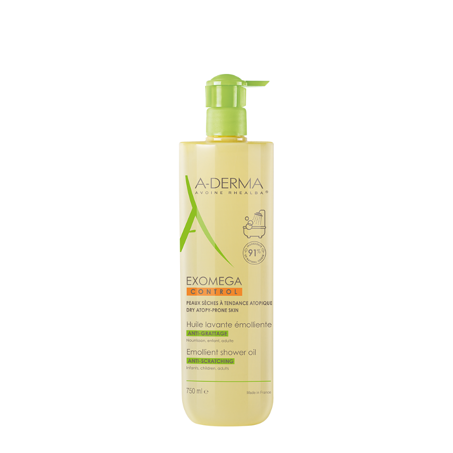 A-Derma Exomega Control Bath Oil cleanses and soothes fragile, dry skin prone to atopic eczema. Formulated with 91% natural ingredients, it can be used daily in the shower or bath, on both the face and body. Its formula with soothing and anti-irritant Rhealba Oat extract comforts and nourishes fragile skin.