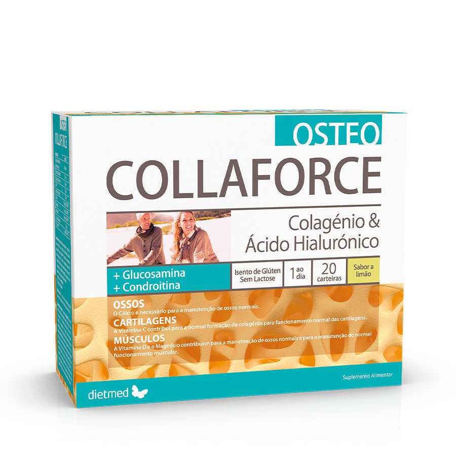 Collaforce Osteo is a dietary supplement for bones, cartilage and muscles. Its formula contains Calcium, which is necessary for the maintenance of normal bones, Vitamin C, which contributes to the normal formation of collagen, and Vitamin D and Magnesium, which contribute to the maintenance of normal bones and normal muscle function.