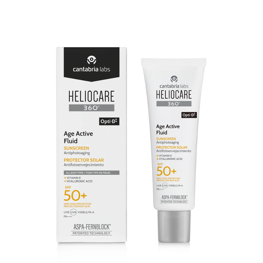 Heliocare 360 ​​Age Active Fluid SPF50+ is a facial sunscreen that helps prevent and repair skin aging caused by the sun and other environmental stressors. Its high broad-spectrum photoprotection helps prevent signs of aging caused by UVB, UVA, visible light and IV-A. In addition, its innovative formula creates an anti-pollution protective film, and a triple complex of anti-aging active ingredients helps reduce expression lines and provides firmness.
