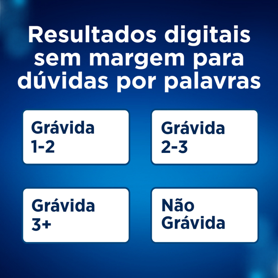 It's two tests in one. Firstly, it detects the presence of the pregnancy hormone with an accuracy of over 99% from the day your period is expected and also indicates how many weeks ago you became pregnant, 1-2, 2-3 or more than 3 weeks ago (+3);