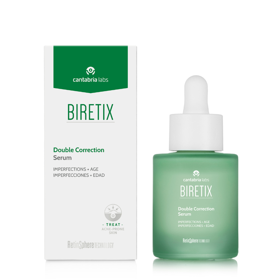 Biretix Double Correction Serum is a facial serum with dual action against imperfections and aging. It reduces hyperpigmentation and evens out skin tone, while controlling oiliness and mattifying the skin. Recommended for oily and/or acne-prone adult skin, even sensitive skin.