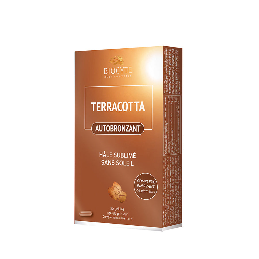 Biocyte Terracotta Self-Tanning is a food supplement with an innovative complex of 4 pigments and 1 plant for a perfect tan without the sun. It provides a luminous and even tan tone on the body and face without spots, all year round. It prepares the tan, has an anti-wrinkle action and improves skin hydration.