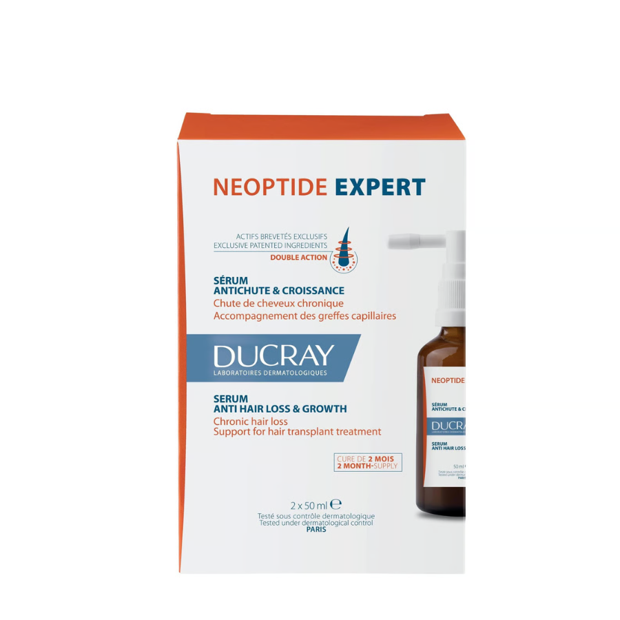 Ducray Neoptide Expert Serum is an anti-hair loss and hair growth serum. Neoptide Expert is a hair care product developed by Ducray laboratories. It is indicated for cases of chronic hair loss, as well as for follow-up care after hair transplants.