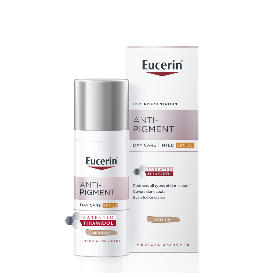 Eucerin Anti-Pigment Day Cream Medium effectively reduces hyperpigmentation spots and prevents their reappearance. Provides immediate coverage for an even appearance. Immediately conceals dark spots. Evens out the complexion for a radiant complexion. First visible results after 2 weeks. Prevents the formation of future sun-induced hyperpigmentation spots.