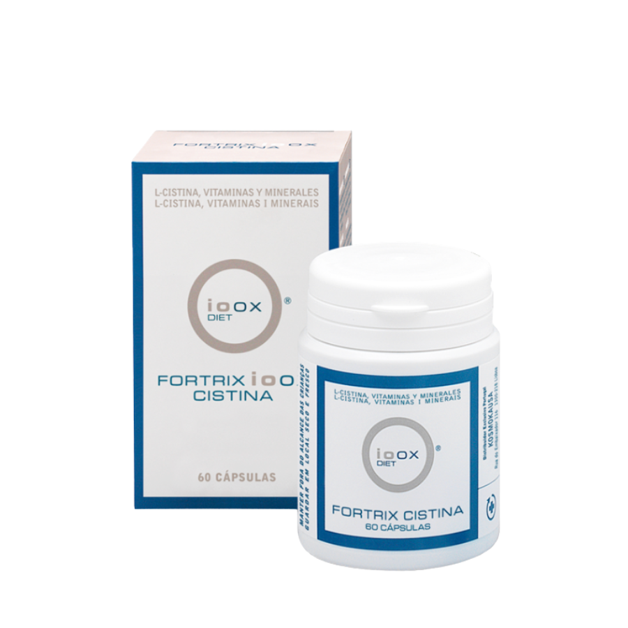 Ioox Fortrix Cistina + Biotina Cápsulas é um suplemento alimentar preparado com L-cistina (500 mg), biotina, vitaminas do grupo B e oligoelementos, essenciais para fortalecer cabelo e unhas. Sem glúten.