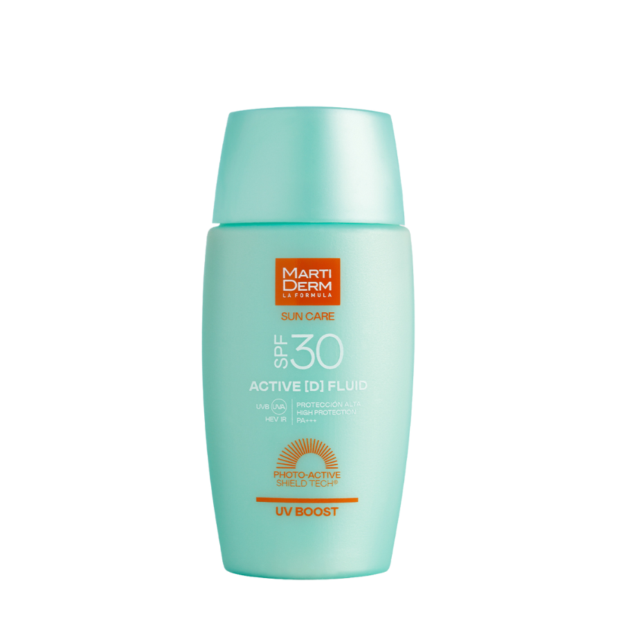Martiderm Sun Care Active D Fluid SPF30 is a facial photoprotector with a fluid texture that includes Photo-Active Shield Techology®, which allows you to optimize the concentration of filters in the formula, ensuring optimal UVA and UVB protection. In addition, it contains active antioxidants such as cocoa extract that completes broad-spectrum protection for all skin types. Contains moisturizing active ingredients.