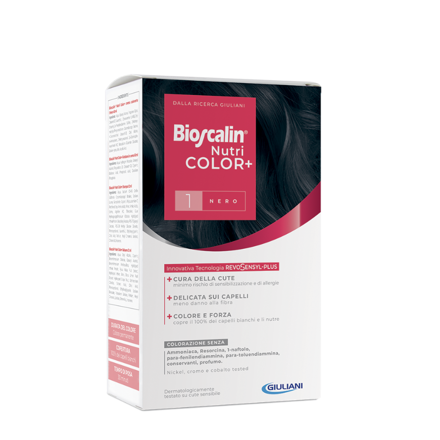 Bioscalin Nutri Color+ Tinta Coloração 1 Negro es un tinte utilizado para teñir el cabello. Ideal para un color intenso y duradero con una cobertura del 100% de las canas. Gracias a la innovadora Tecnología RevoSensyl-Plus y a la eliminación de los agentes sensibilizantes más comunes, permite una mayor seguridad y una mayor tolerabilidad.