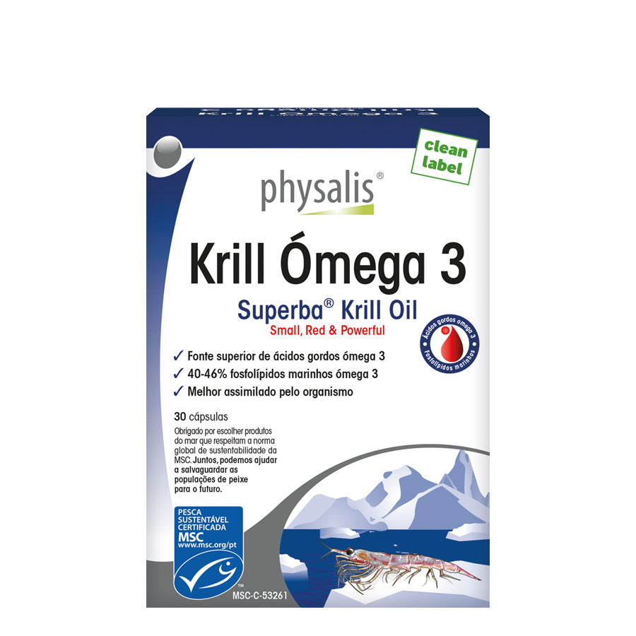 Krill, nombre colectivo que reciben los pequeños camarones de aguas frías, es una especie de zooplancton marino. El aceite de krill Physalis se extrae de Euphausia superba. El aceite de krill es muy rico en ácidos grasos omega-3 EPA y DHA. Los omega-3 del aceite de krill están presentes en forma de fosfolípidos, que son muy bien asimilados por el organismo. Además de estos ácidos grasos, el aceite de krill contiene astaxantina.