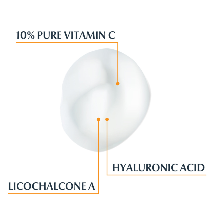 10% de Vitamina C pura, Ácido Hialurónico y Licocalcona A.