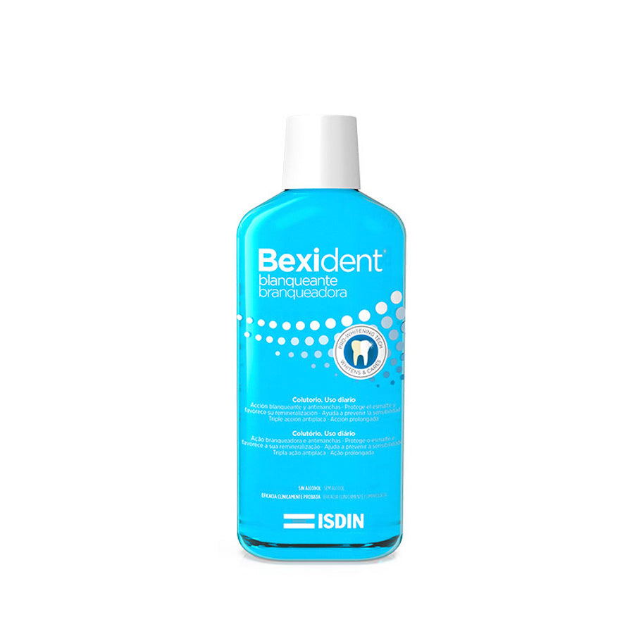Bexident Colutorio Blanqueador, gracias a la tecnología Pro-Whitening Tech, proporciona una acción blanqueadora y antimanchas. Además, protege el esmalte y favorece su remineralización. Recomendado para la higiene bucal diaria en situaciones donde los dientes se encuentran descoloridos, recuperando su color blanco natural a los 7 días de uso.