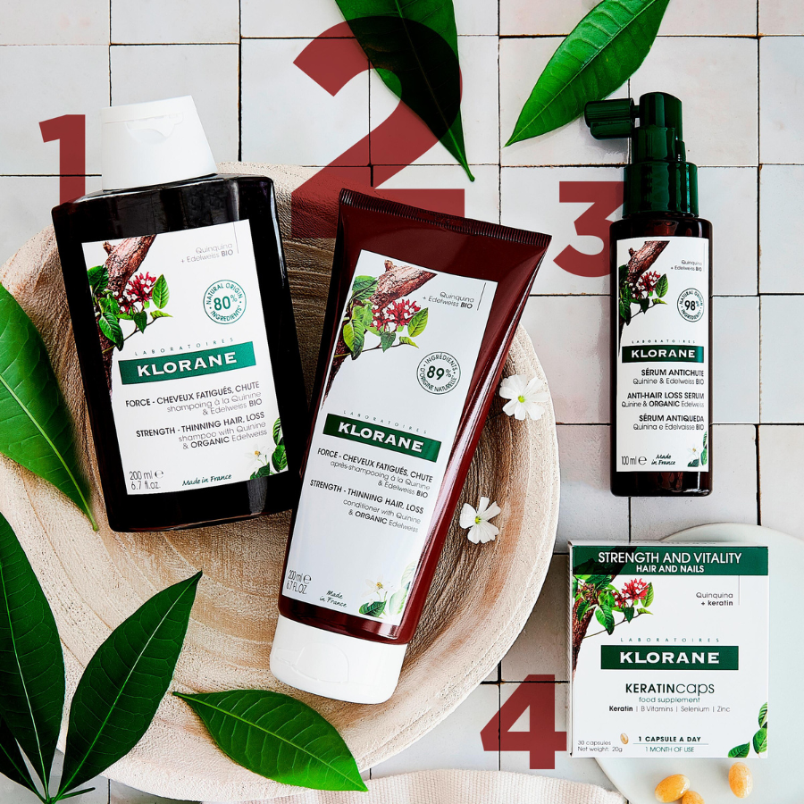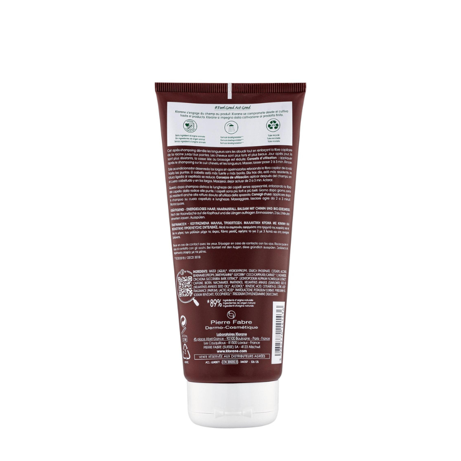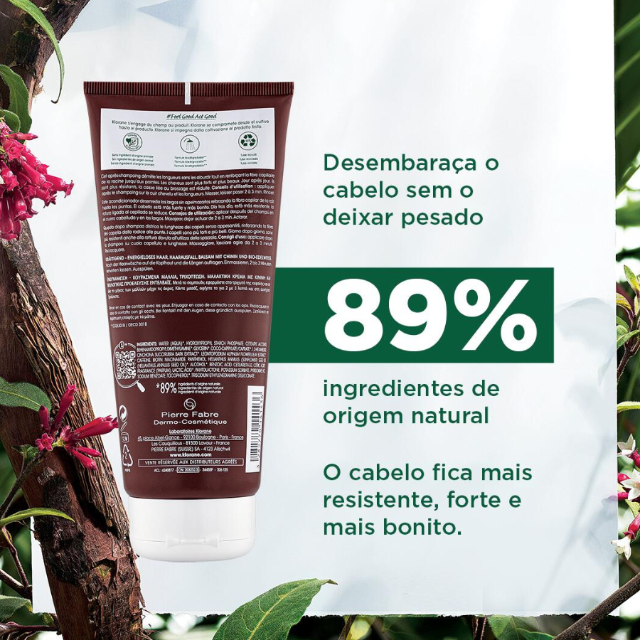 El acondicionador Klorane Quinina BIO facilita el desenredado, al mismo tiempo que fortalece el cabello para limitar la rotura asociada al cepillado. Para cabellos debilitados o para complementar el cuidado anticaída. Revitalizado, el cabello se vuelve más fácil de peinar y su estructura se refuerza.