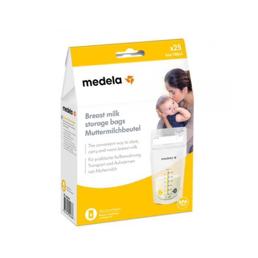 Las bolsas de almacenamiento de leche materna de Medela x25 son una solución práctica para almacenar, transportar y calentar la leche materna. Higiénico, sin fugas una vez sellado, puede almacenarse en el frigorífico o congelador y descongelarse y calentarse rápida y fácilmente.