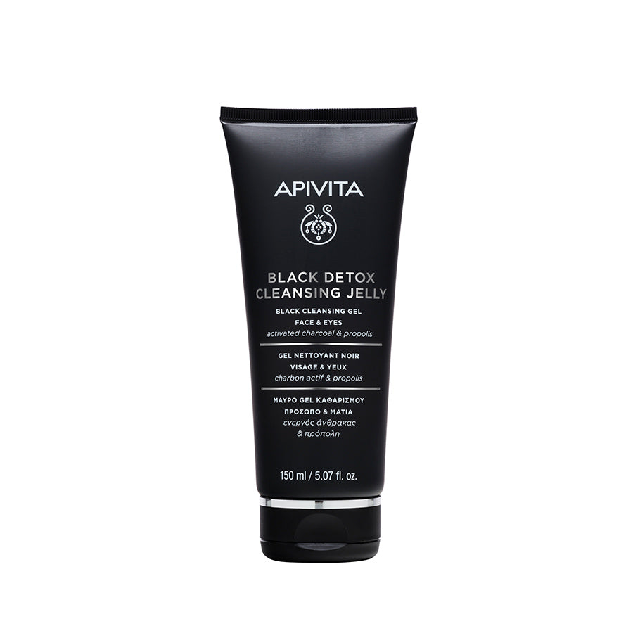 Apivita Black Detox Gel de Limpeza Rosto e Olhos com carvão ativado e própolis, limpa eficazmente o rosto e os olhos, sem secar a pele. Desintoxica a pele, deixando-a fresca, limpa e confortável e oferece ação extra antipoluição.