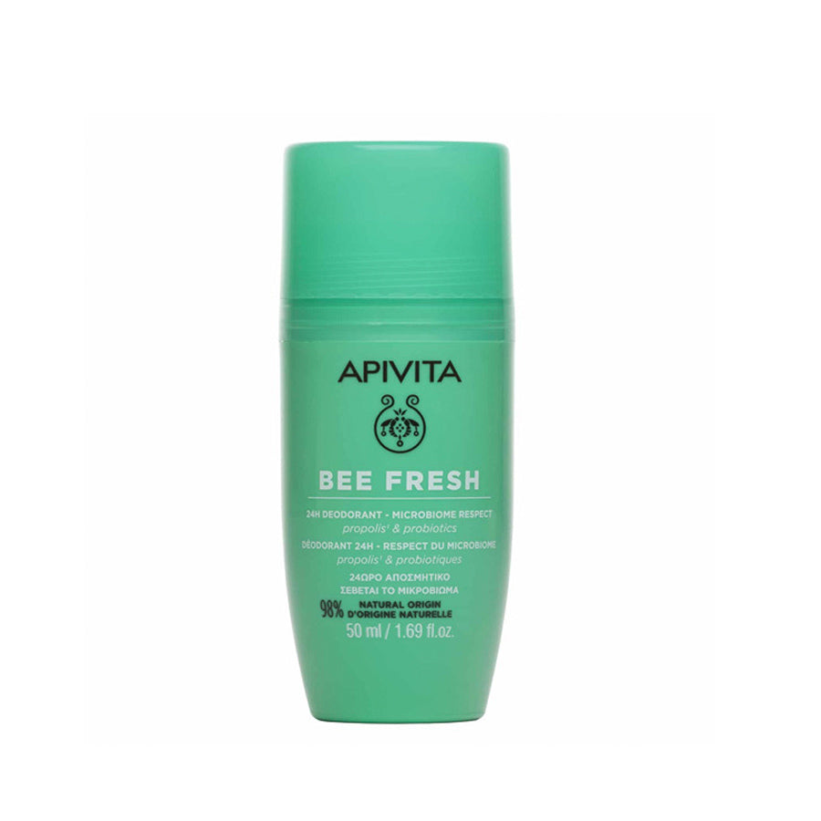 Apivita Bee Fresh Desodorizante Roll-On foi criado para oferecer sensação de frescura e conforto o dia todo. Com uma composição enriquecida com 98% de ingredientes naturais, sem sais de alumínio e álcool e enriquecido com própolis e probióticos patenteados, é a resposta para todas as mulheres e homens que procuram um desodorizante natural, amigo da pele e eficaz.
