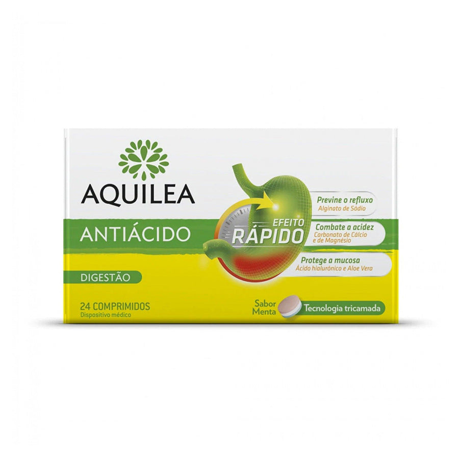 Aquilea Antiácido Cápsulas x24 previne o refluxo, combate a acidez e protege a mucosa gástrica irritada. É um dispositivo médico indicado para o tratamento sintomático de refluxo gastroesofágico e hiperacidez, reduzindo os sintomas relacionados como ardor, regurgitação ácida e dor de estômago.