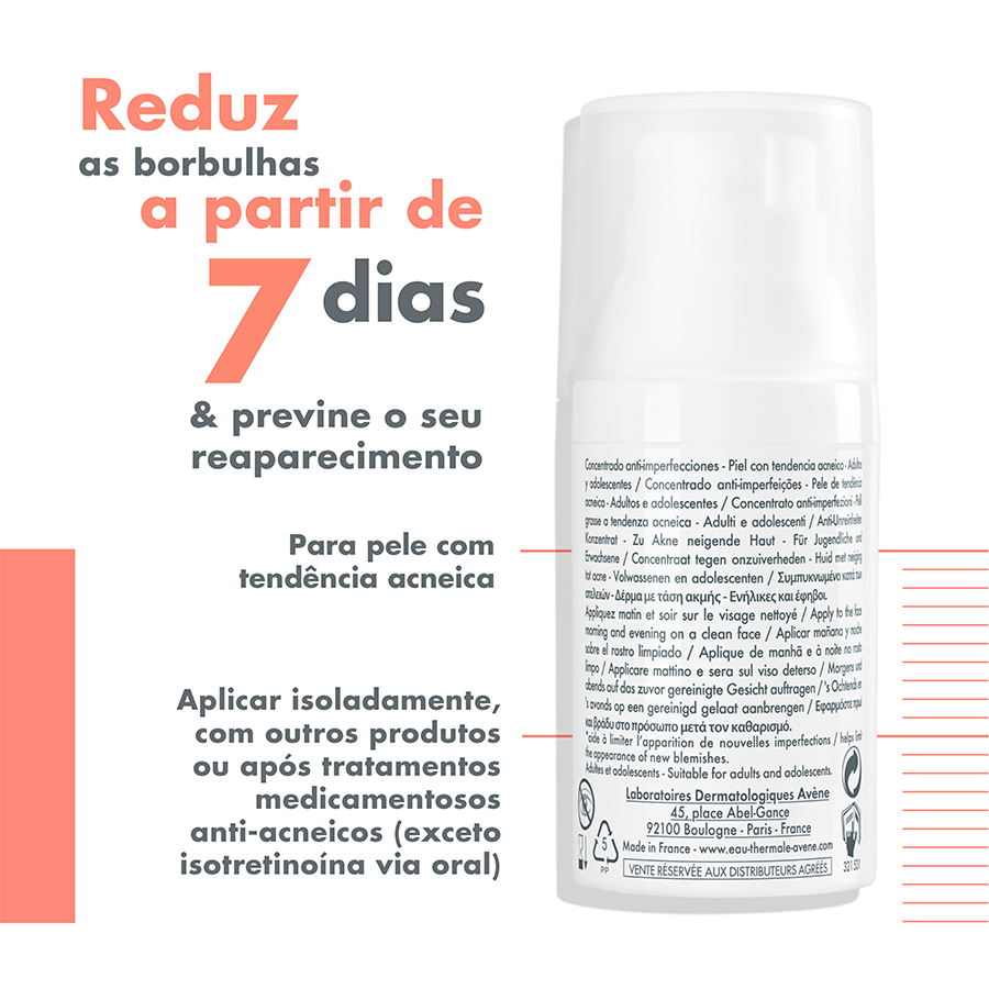 Reduz as borbulhas em apenas 7 dias. Previne a recidiva durante um ano;