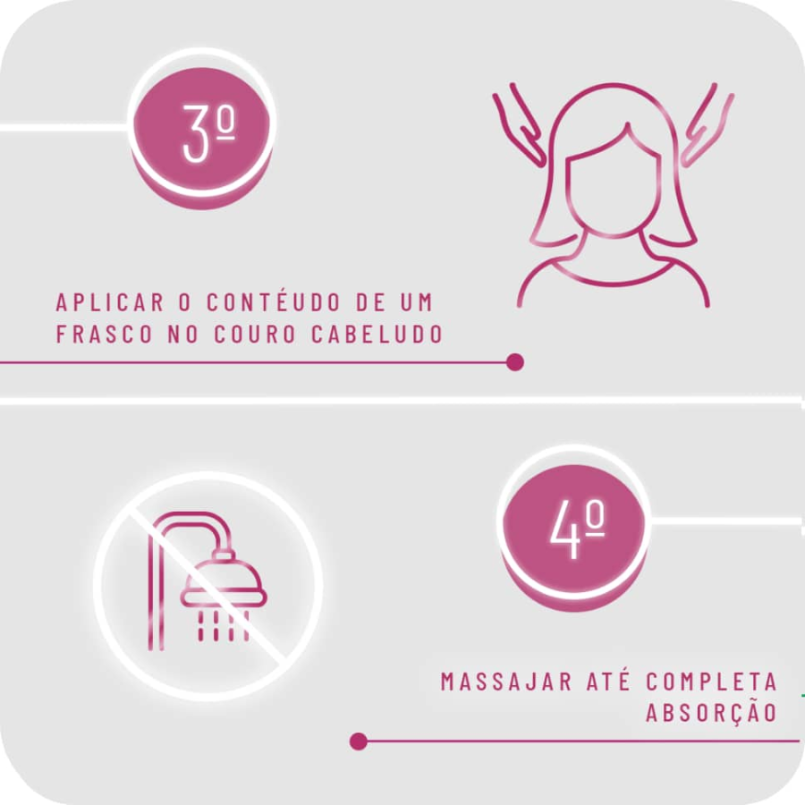 Pressionar o invólucro sobre a cânula e distribuir o seu conteúdo uniformemente a partir das áreas mais desbastadas. Massajar até completa absorção.