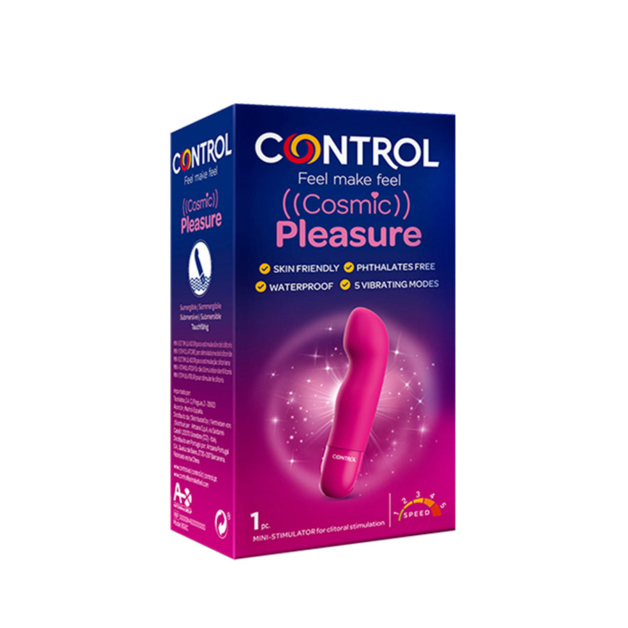 Control Toys Cosmic Pleasure é um mini estimulador clitoriano discreto e impermeável para quem procura novos horizontes de satisfação. A sua forma ligeiramente curva permite uma excitação dos teus pontos erógenos preferidos, enquanto os seus 5 níveis de vibração proporcionam um potente clímax.