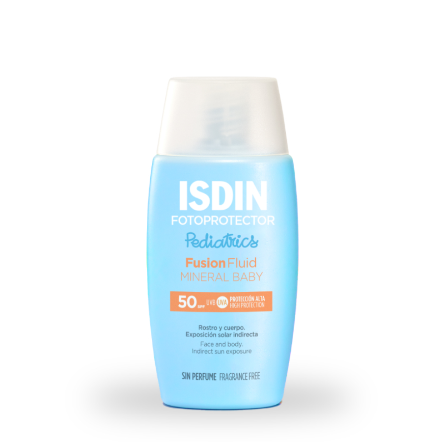Isdin Fotoprotector Pediatrics Fusion Fluid Mineral SPF50+ é um protetor solar 100% mineral formulado especificamente para a pele do bebé. Adaptado para pele atópica ou pele sensível e a partir dos 6 meses.