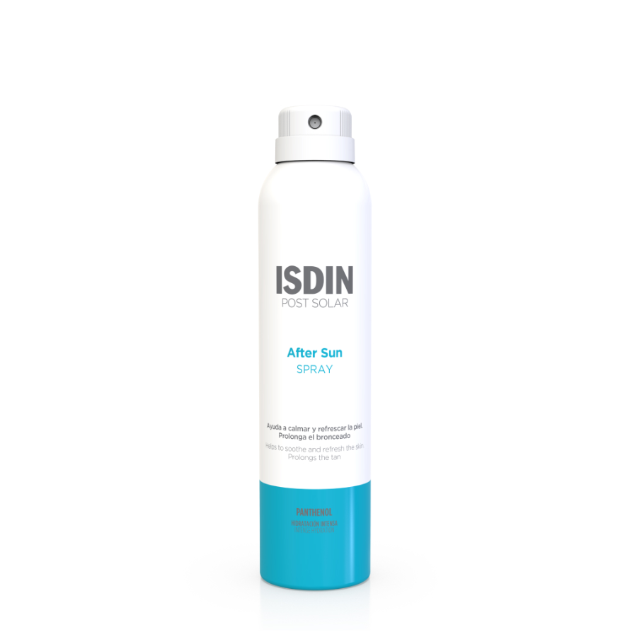 Isdin Postsolar After Sun Spray ajuda a aliviar o ardor e a vermelhidão causada pelo sol, suaviza a pele e proporciona uma agradável sensação de hidratação. Aplicação ótima em qualquer parte do corpo, incluindo as zonas de difícil acesso, graças à válvula que facilita uma difusão contínua, homogénea e em qualquer posição.