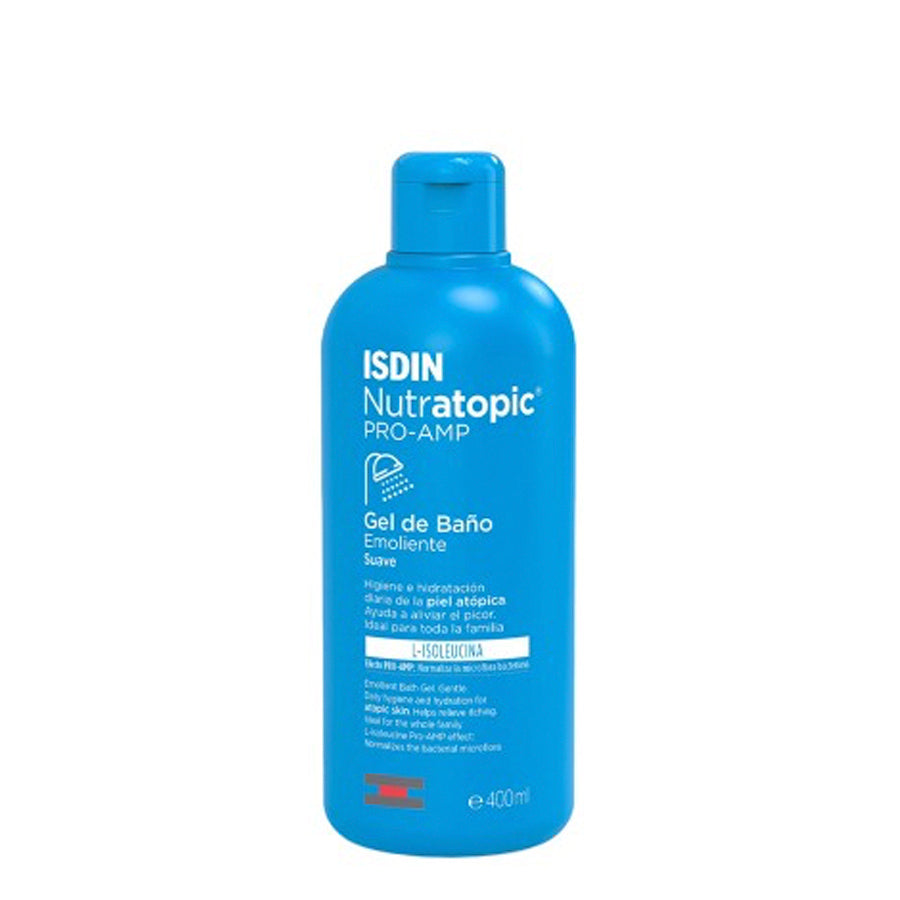 Isdin Nutratopic Pro-Amp Gel de Banho Emoliente formulado com ingredientes que limpam e hidratam suavemente, ajudando a evitar o prurido associado à pele atópica.