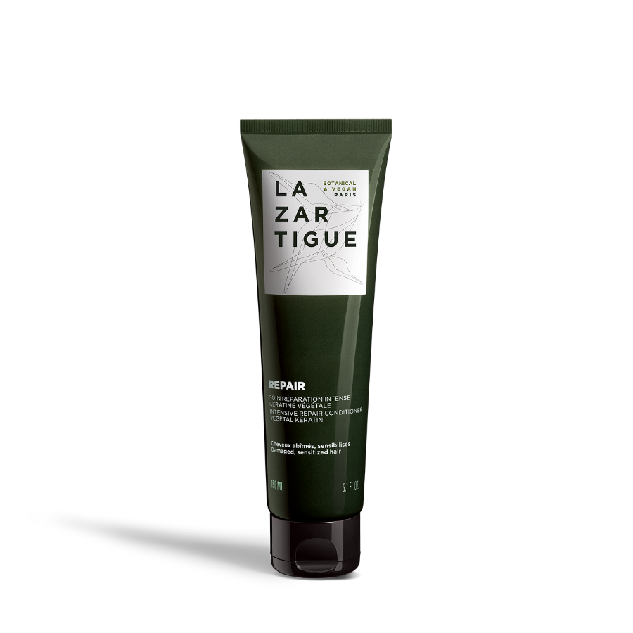 Lazartigue Condicionador Repair é um condicionador de uso diário que repara intensamente os cabelos danificados e sensibilizados. A sua fórmula contém 91% de ingredientes de origem natural e é rica em queratina vegetal que se funde em profundidade no cabelo e couro cabeludo e tem como principal função reestruturar as fibras que se encontram danificadas. Desembaraçado, o cabelo recupera a sua vitalidade, flexibilidade e suavidade.