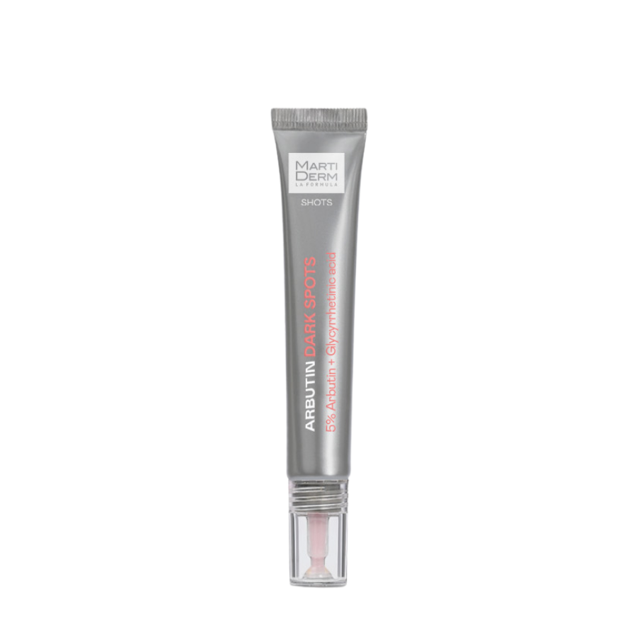 Martiderm Shots Arbutin Dark Spots é um gel creme à base de uma alta concentração de arbutina (5%) e ácido glicirretínico, que ajuda a iluminar e uniformizar o tom de pele. Esta combinação sinérgica atua reduzindo o aparecimento de manchas, melhorando o aspeto da pele. Fórmula com textura leve e rápida absorção.