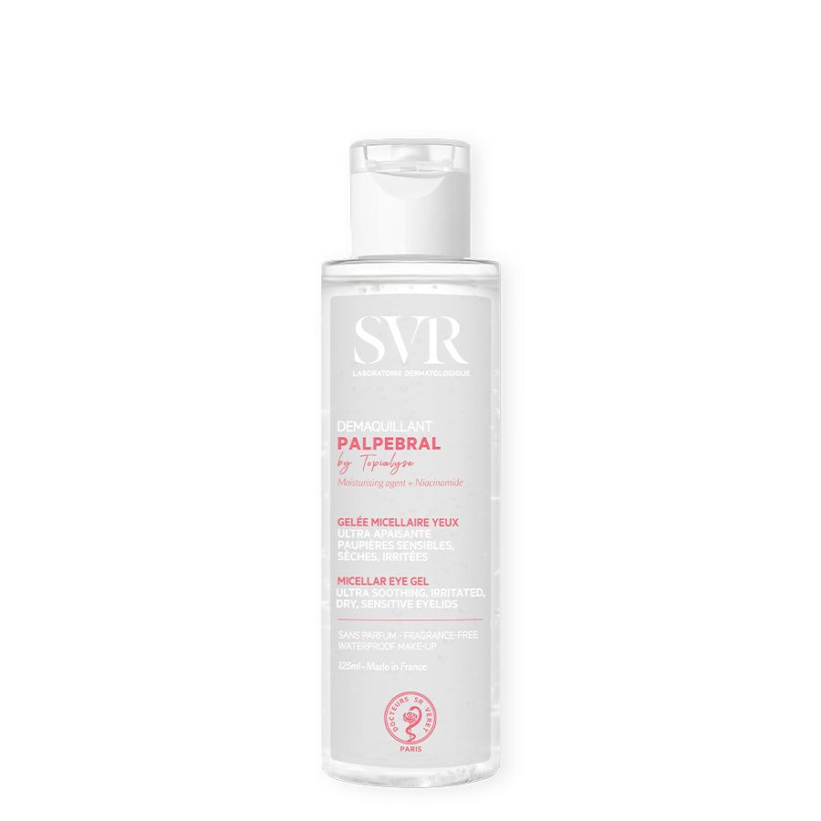 SVR Topialyse  Palpebral Geleia Desmaquilhante Olhos 125ml é uma geleia de limpeza e desmaquilhagem para muito suave, sem perfume  e com ação calmante para as pálpebras sensíveis, irritadas secas ou atópicas. Remove maquilhagem à prova de água.