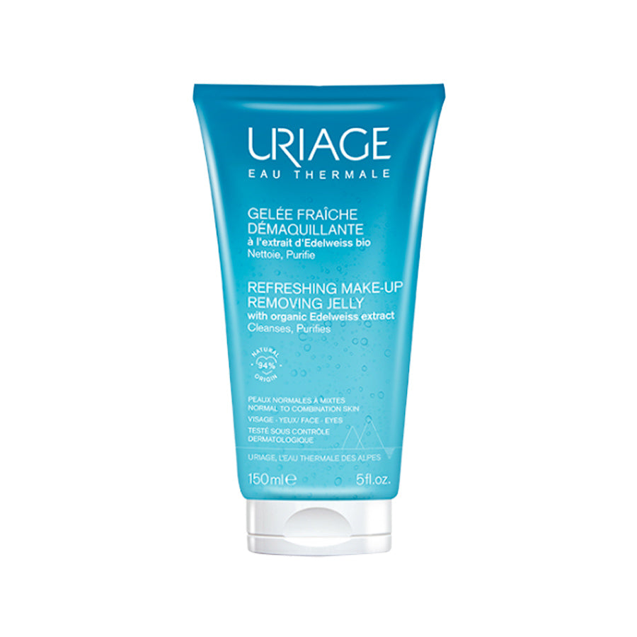 Uriage Geleia Fresca Desmaquilhante remove e limpa suavemente a maquilhagem do rosto e dos olhos, proporcionando uma verdadeira sensação de frescura com a sua textura inovadora. Ideal para a pele mista a oleosa.