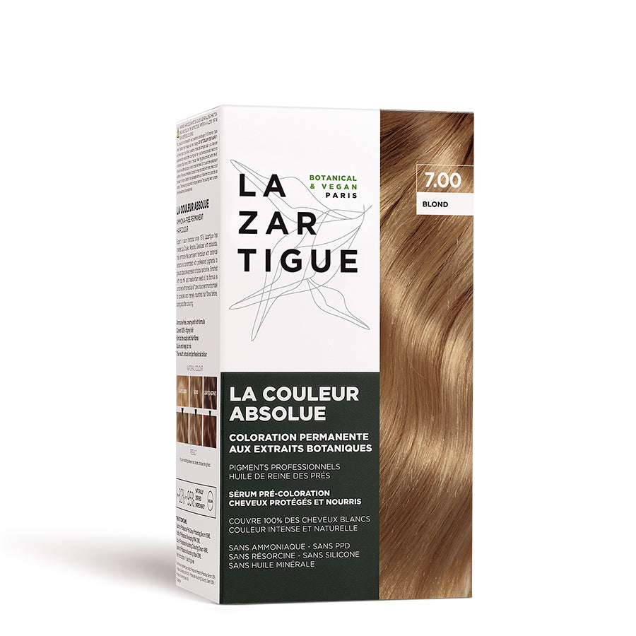 Lazartigue Coloração Permanente Tom 7.00 Louro com extratos botânicos e sem amoníaco. A sua concentração de pigmentos profissionais permite dar uma expressão absoluta da cor e brilho ao cabelo. A sua fórmula vegan, rica em leite de arroz e óleo rainha-dos-prados, protege e nutre a fibra capilar. O resultado é uma cor natural, profissional, que cobre 100% dos cabelos brancos.