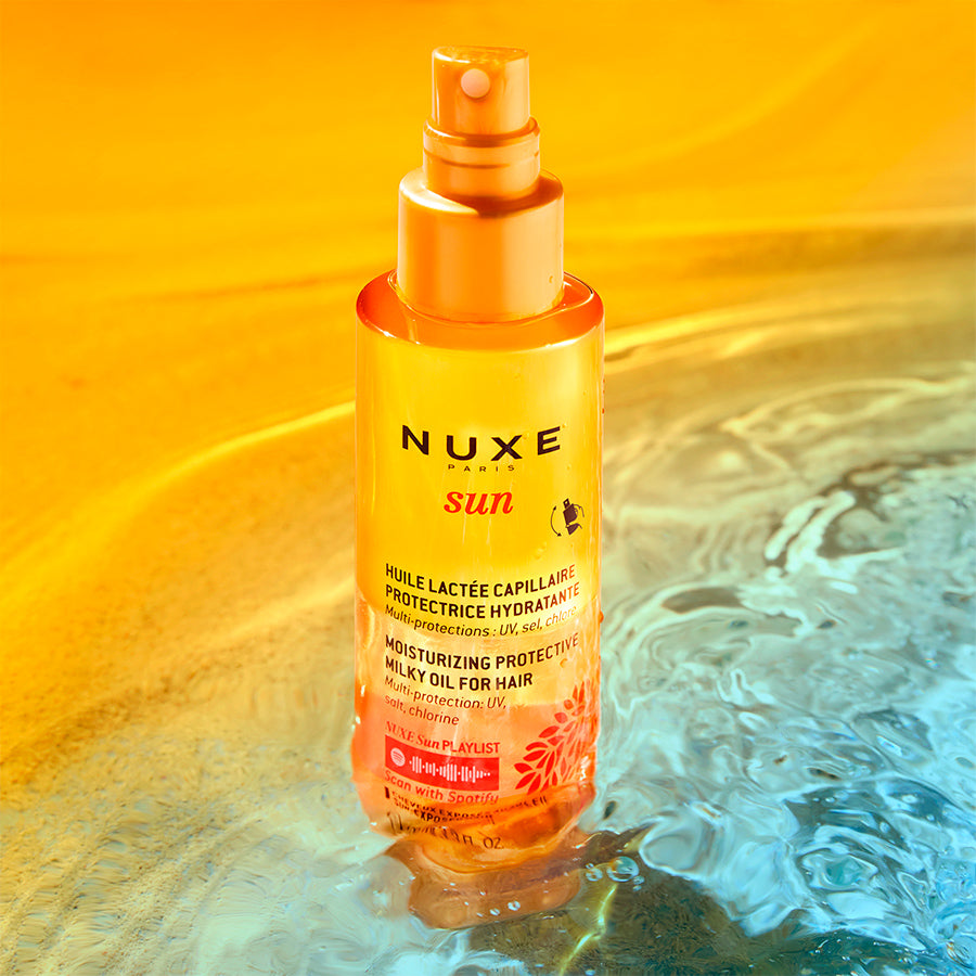 Nuxe Sun Óleo Lácteo Protetor de Cabelo é um óleo lácteo bifásico que protege os cabelos dos raios UV, proporcionando hidratação e brilho. Ajuda a nutrir e proteger o cabelo e couro cabeludo das agressões externas. Protege contra os raios UV, sal e cloro. Protege, hidrata e mantém a coloração do cabelo. O cabelo fica hidratado, infinitamente macio e sedoso ao toque. Pode ser usado por qualquer tipo de cabelo em crianças a partir dos 12 anos.