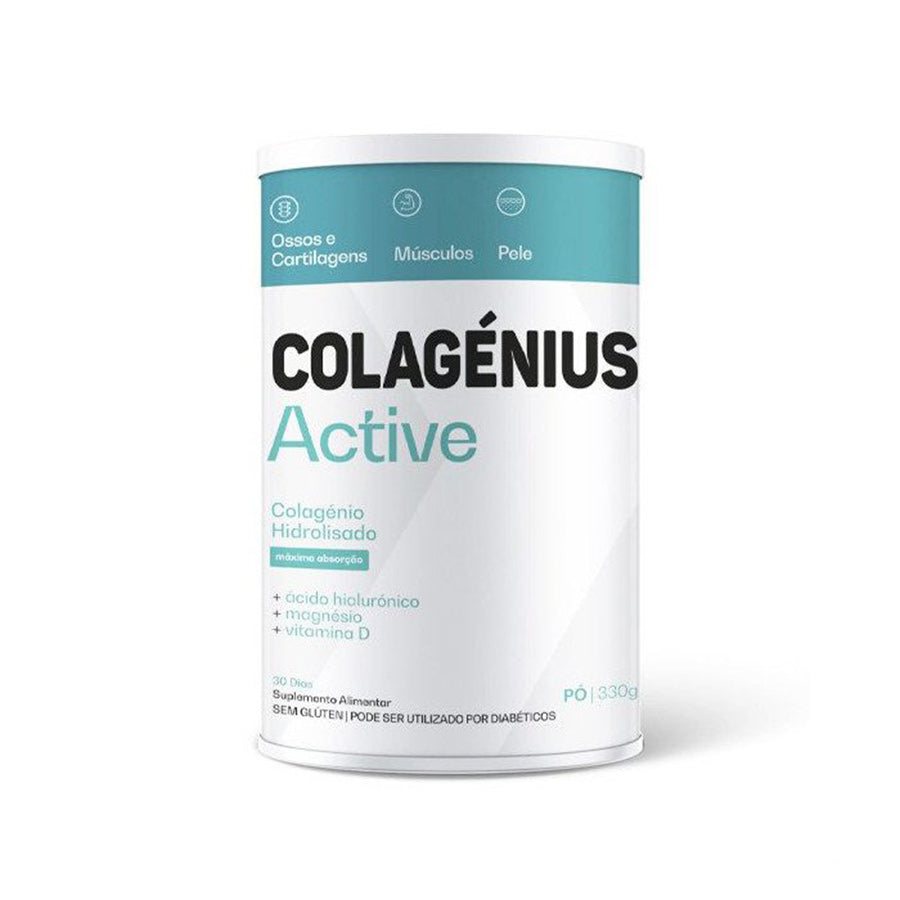 Colagénius Active Neutro Pó é um suplemento alimentar com colagénio hidrolisado com máxima absorção para ossos e cartilagens, músculos e pele, para 30 dias de utilização. Contém ainda ácido hialurónico, magnésio, vitamina C e vitamina D.