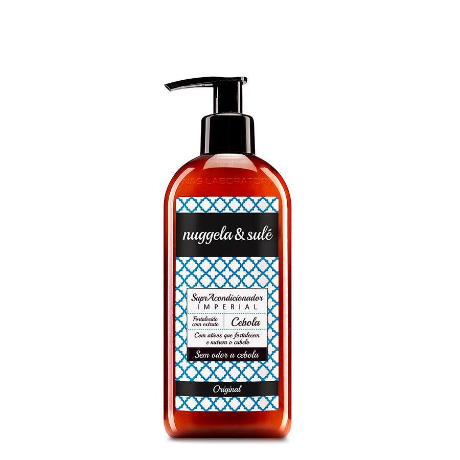 Nuggela & Sulé Acondicionador Imperial Cebola o primeiro condicionador do mercado que não deixa o couro cabeludo oleoso. Com ação tera-pêutica e estética, pois fornece nutrientes ao fo- lículo piloso para fortalecer, proteger, nutrir e melhorar o brilho do cabelo da raiz às pontas.